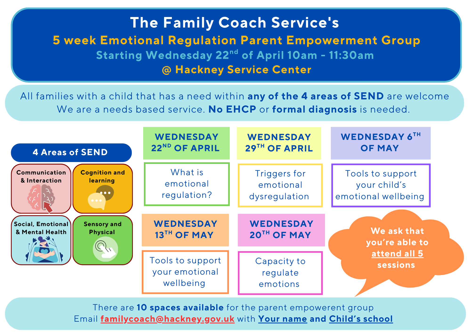 Help & Advice Free School MealsHackney Transport Travel AssistanceSEND Information, Advice & GuidanceGrants & BenefitsHackney Local Offer Useful resources Hackney SEND Services Secondary FAQ guide to Kooth for parents and carers Kindness Assembly on Vimeo Makaton Follow Up self referral info LINDEN June 2026 Makaton for Parents self referral info LINDEN April 2026 What is Developmental Language disorder? ADHD children do not need more discipline ADHD meds do not cause addiction Concentration myth Not an excuse for laziness Countdown to Kench Hill 2026 Kench Hill 2026 SOCIAL STORY Wellbeing Walks 2026 Half Term 3 Family Coach Service March 2026 Workshop Vaccination UK Letter Period Management The Family Coach Services Understanding Autism Training Cake coffee and wins Summer 1 Wellbeing Walks